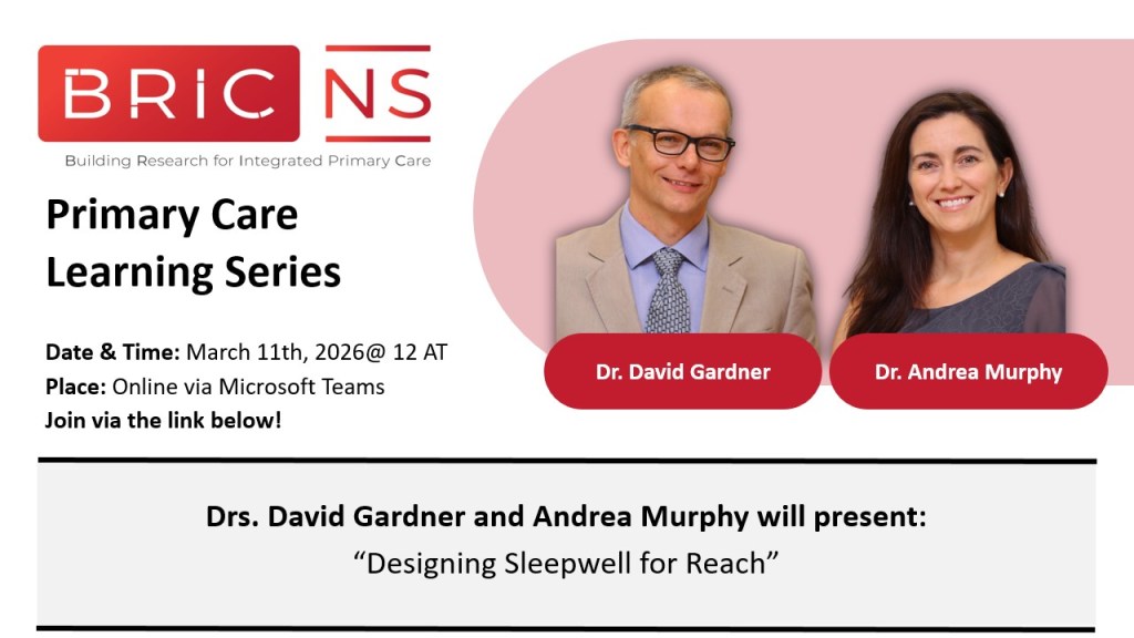The BRIC NS Primary Care Learning Series is an opportunity for professors, established researchers and/or early career investigators and trainees across Nova Scotia to share their completed or in-progress primary care research.