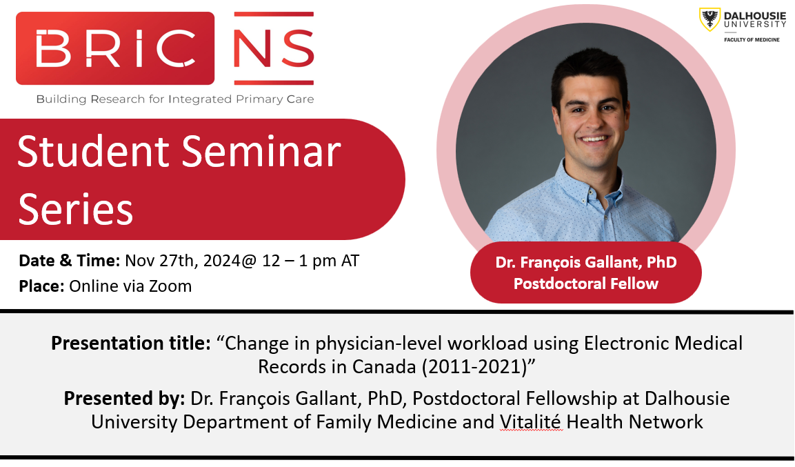 The BRIC NS Primary Care Learning Series is an opportunity for professors, established researchers and/or early career investigators across Nova Scotia to share their completed or in-progress primary care research.
